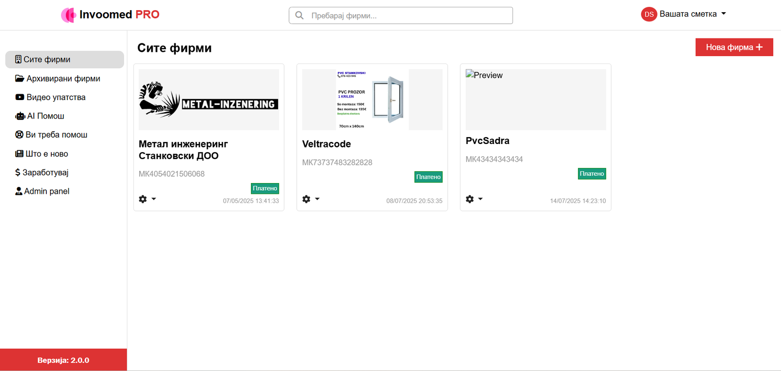 Invoomed is a complete accounting and invoicing SaaS platform fully developed by me — both front end and back end. It helps businesses manage invoices, reports, clients, taxes, and payments in one place. The system includes AI assistance, automation, and modern analytics, built to simplify daily company operations across the Balkans.